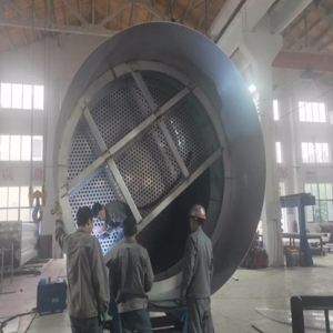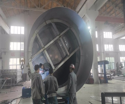 工業(yè)廢氣經(jīng)離心風機輸送至脫硫塔,經(jīng)脫硫塔內(nèi)部的合金托盤,格柵,噴淋等配件進行對氣體的處理,從而達到******對工業(yè)廢氣的排放標準。