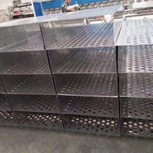 脫硫塔、噴淋塔、冷卻塔、濕電除塵等脫硫脫銷除塵設備煙氣均布裝置,材質一般有304,316L,2205,2507,1.4529,C-276等,厚度2-4mm,通孔率35-45%,圓孔直徑一般35mm,托盤的大小根據塔體的直徑變化,合金托盤整套設備包含:托盤主體,抱箍,夾板,定矩管,螺栓組件等。一般裝在脫硫脫銷設備下氣室,高度根據塔大小確定。