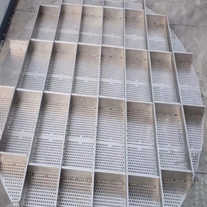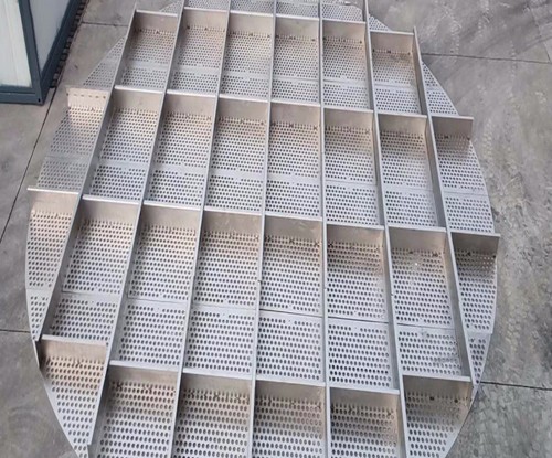 脫硫塔、噴淋塔、冷卻塔、濕電除塵等脫硫脫銷除塵設(shè)備煙氣均布裝置,材質(zhì)一般有304,316L,2205,2507,1.4529,C-276等,厚度2-4mm,通孔率35-45%,圓孔直徑一般35mm,托盤的大小根據(jù)塔體的直徑變化,合金托盤整套設(shè)備包含:托盤主體,抱箍,夾板,定矩管,螺栓組件等。一般裝在脫硫脫銷設(shè)備下氣室,高度根據(jù)塔大小確定。