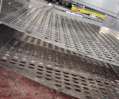 脫硫塔、噴淋塔、冷卻塔、濕電除塵等脫硫脫銷除塵設備煙氣均布裝置,材質一般有304,316L,2205,2507,1.4529,C-276等,厚度2-4mm,通孔率35-45%,圓孔直徑一般35mm,托盤的大小根據塔體的直徑變化,合金托盤整套設備包含:托盤主體,抱箍,夾板,定矩管,螺栓組件等。一般裝在脫硫脫銷設備下氣室,高度根據塔大小確定。
